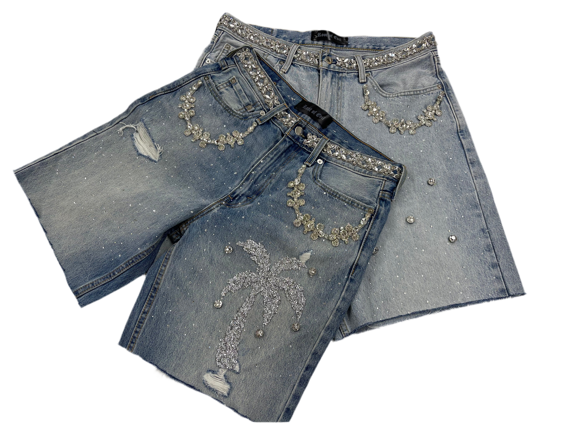 Crystal Jean shorts with palm tree or no palm tree 🏝️💎