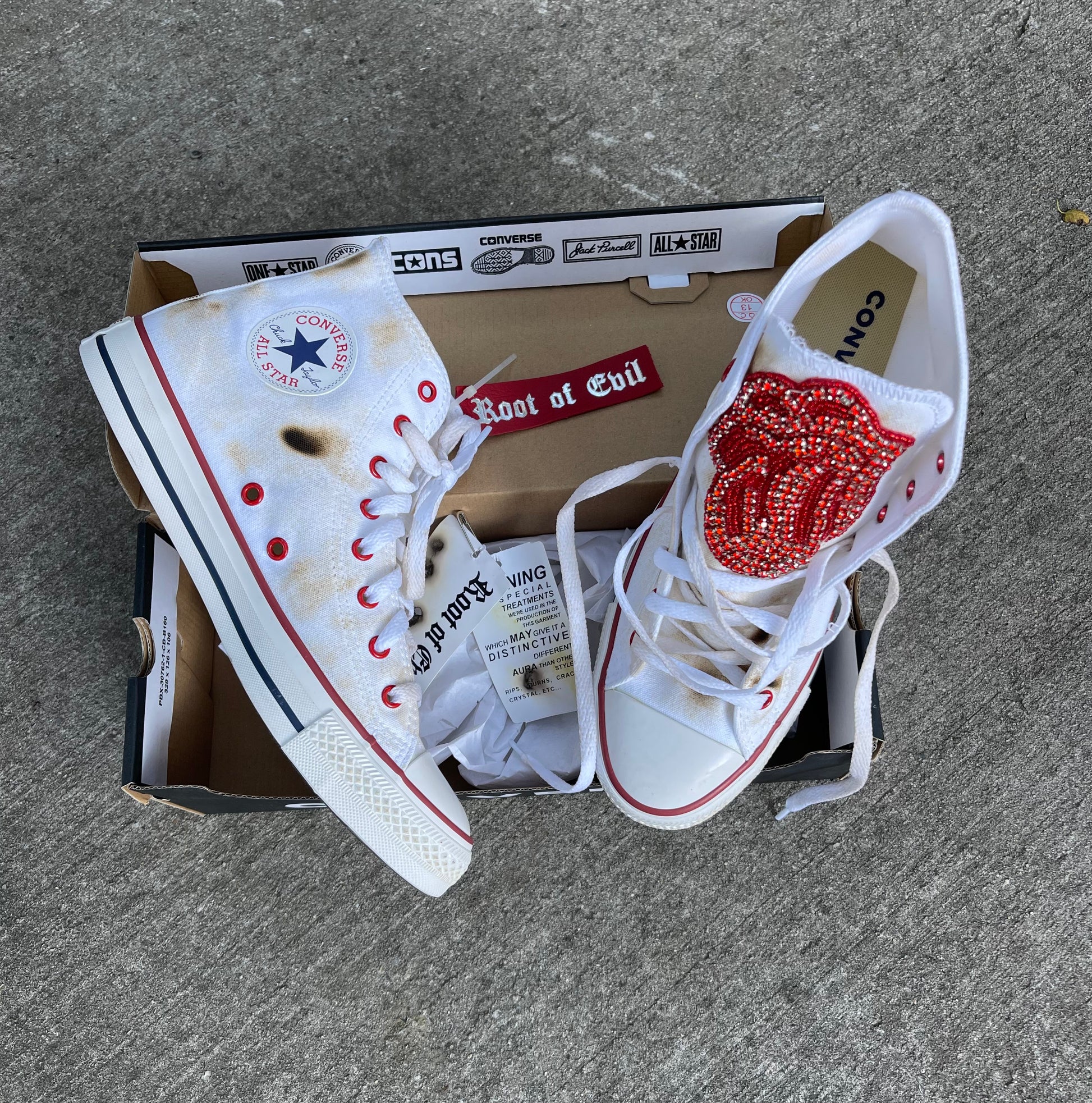 - Red Crystal Rolling Stones Patch — an iced-out statement piece stitched right onto the tongue.